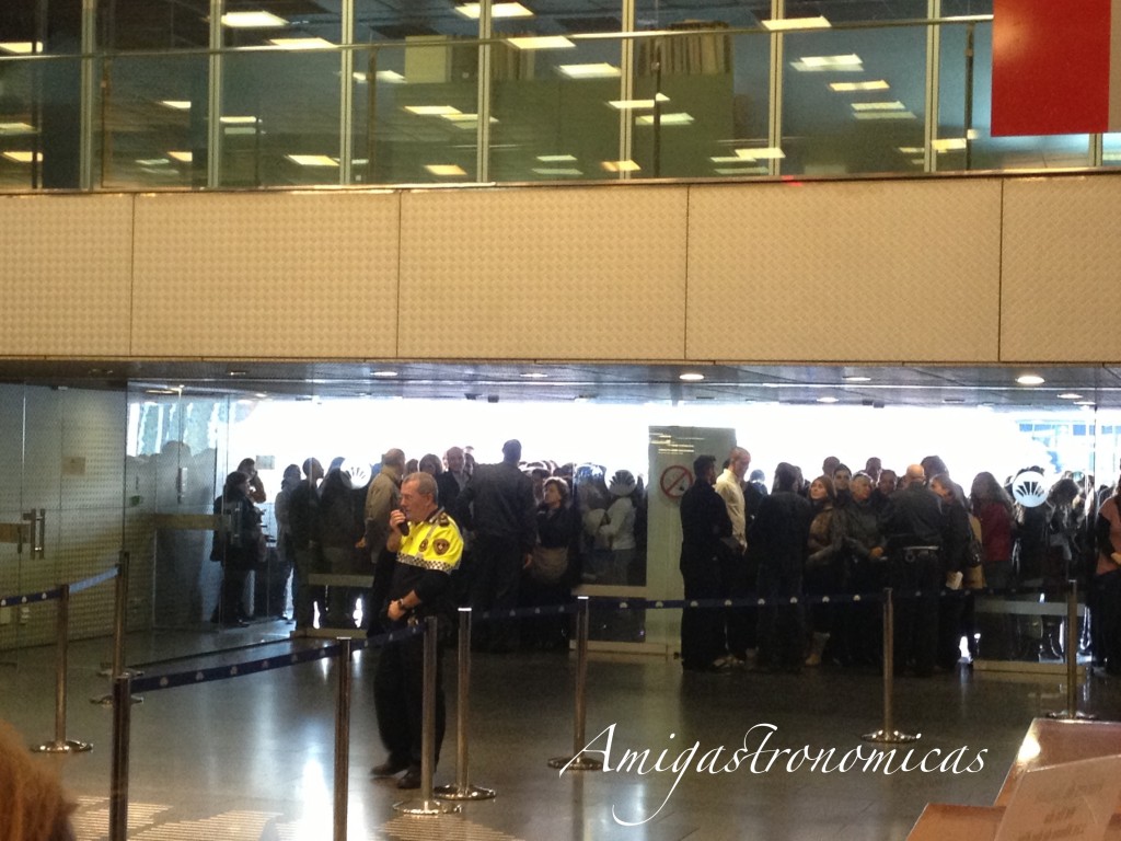 Seguíamos con la megafonía cada cinco minutos, la organización creo que intuía lo que se le venía encima … Gritos de indignación de la gente que se agolpaba en las puertas de acceso, largas colas que aún se veían desde el gran ventanal en la zona de demostración.
